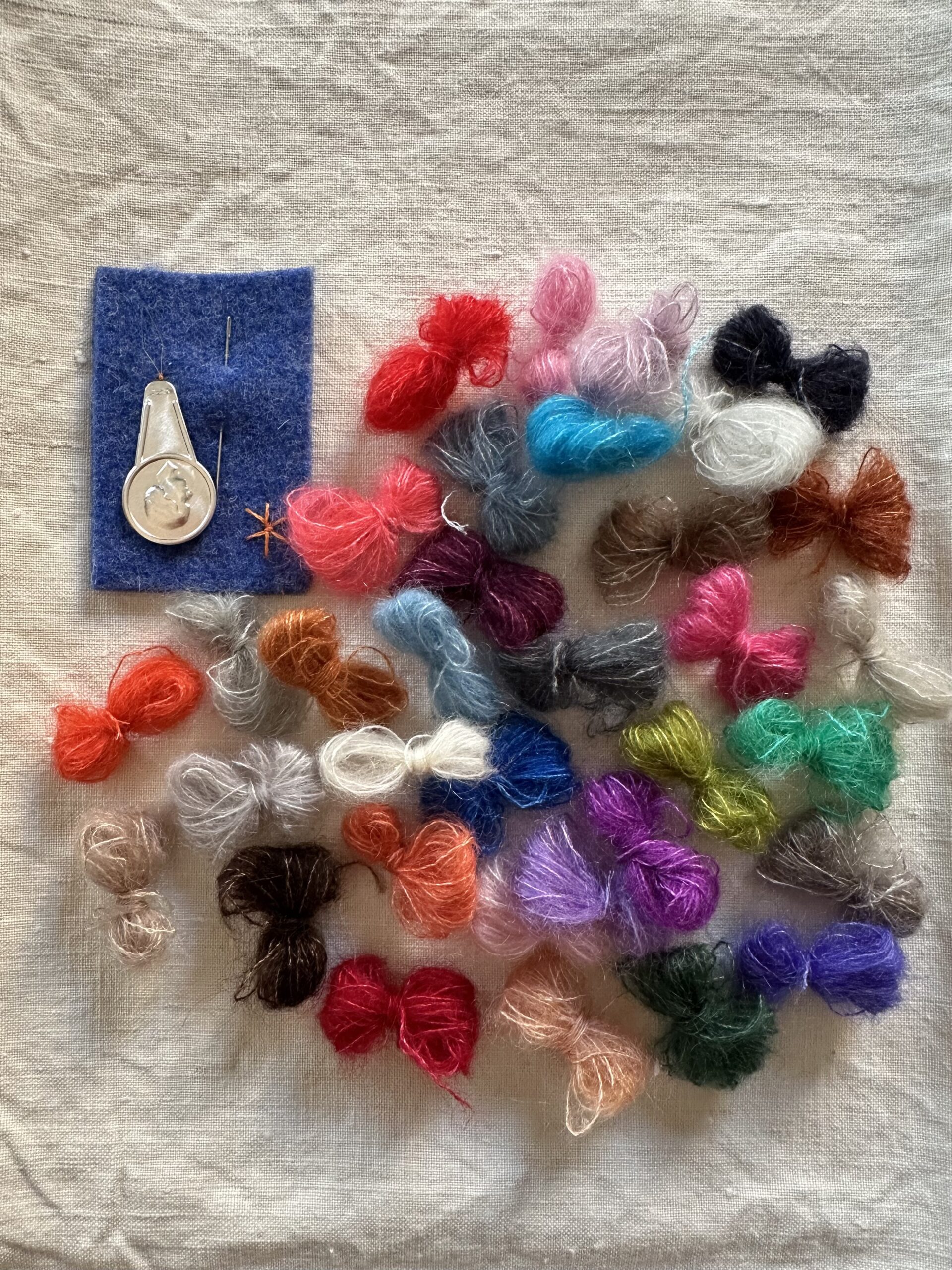 Quando tengo un workshop, porto con me il materiale necessario e tantissimi tipi di filati colorati perché il bello del Visible Mending sta proprio nell’avere tanta scelta per creare dei dettagli molto personali e adatti al tuo progetto!
